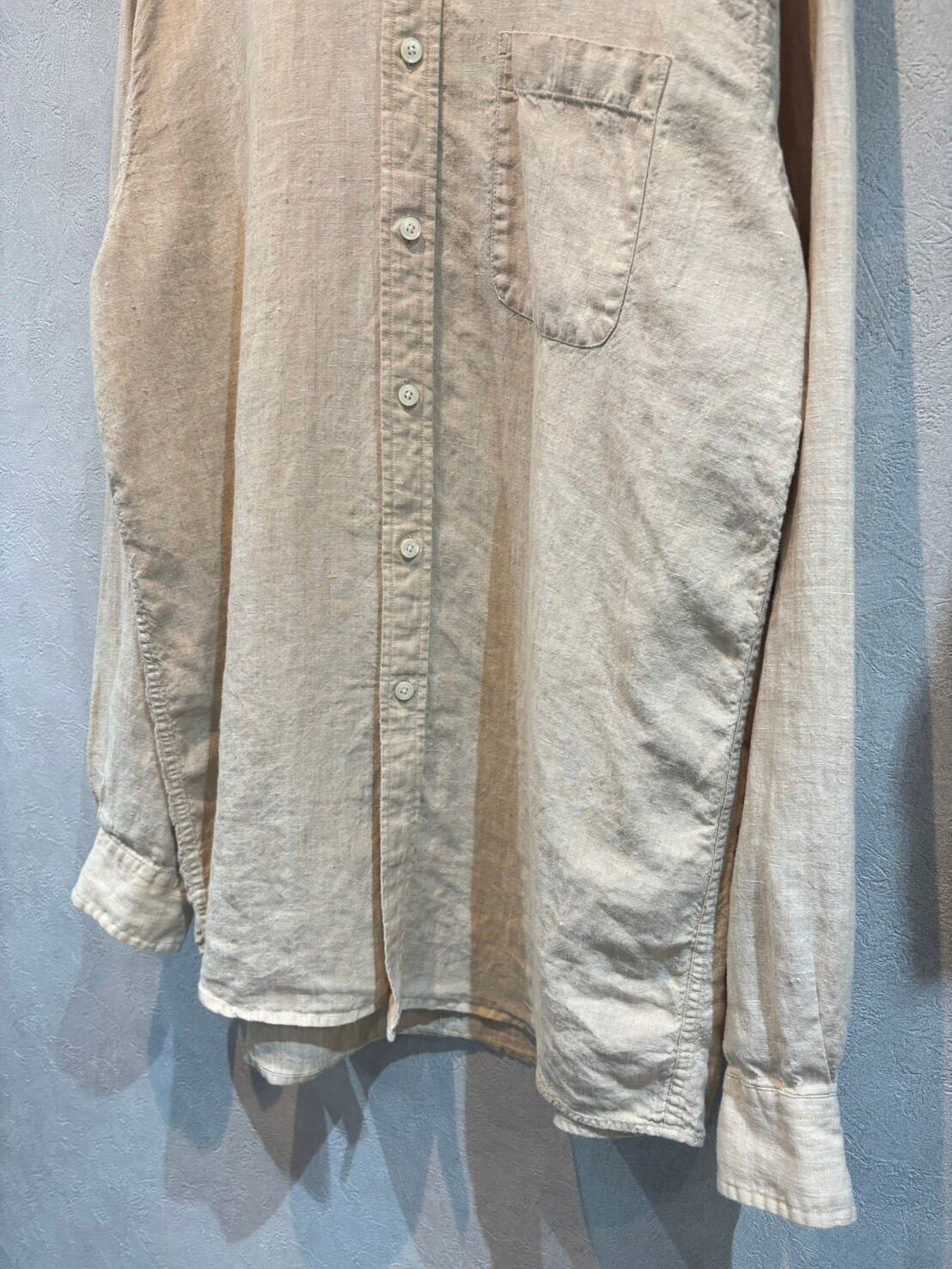 -素材表記- 100% リネン -コンディション- A 特に気になるダメージや汚れの無い、綺麗なコンディションです。 -サイズ- 表記 M 肩幅:50.0cm、身幅:60.5cm、袖丈:64.5cm、着丈:80.5cm
